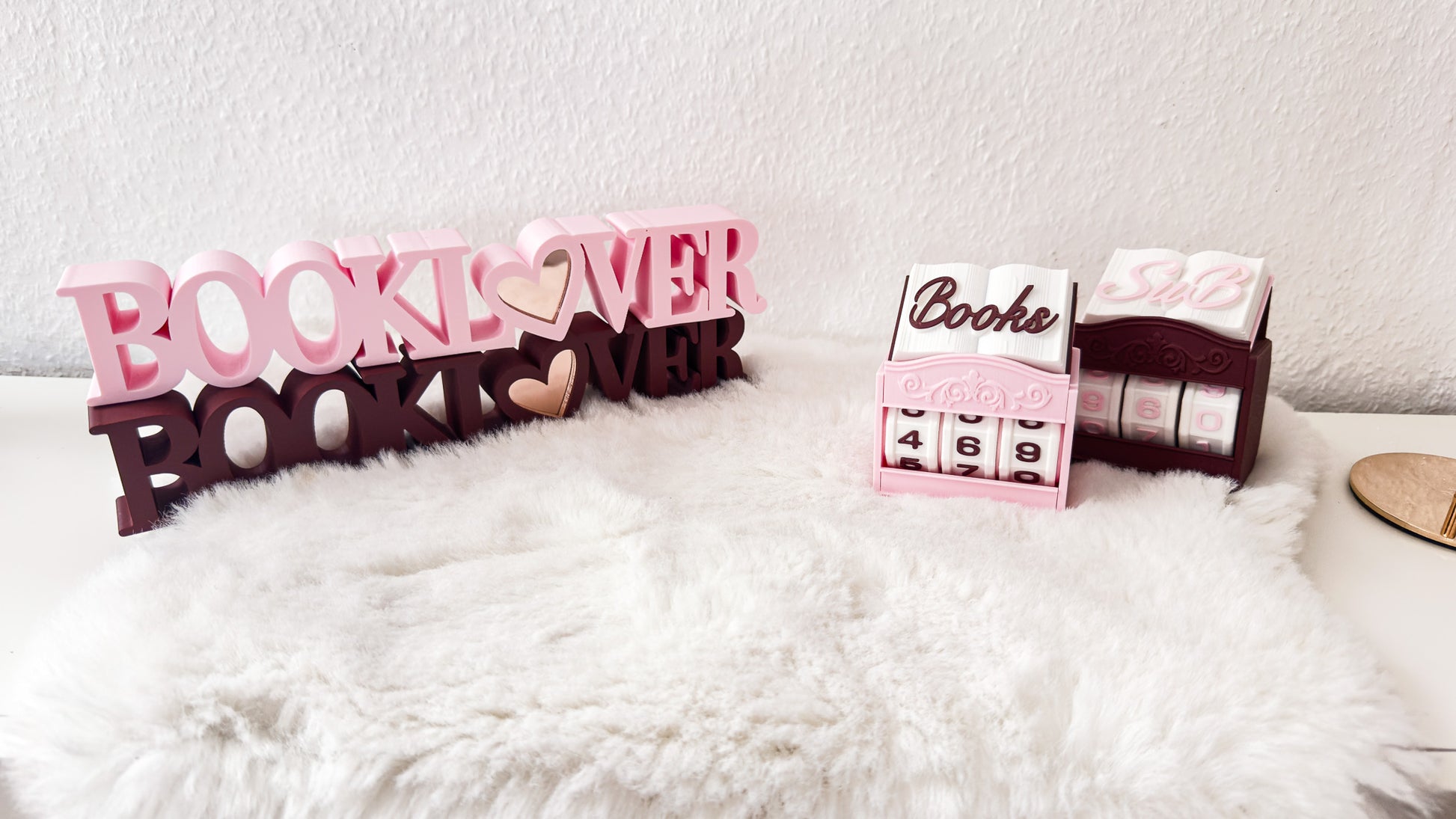 Booklover Schriftzug zum aufstellen. Werte dein Bücherregal mit angesagten, buchigen Schriftzügen auf. Als Highlight enthält das 0 ein kleinen rosafarbenen Spiegel in Herzform.
