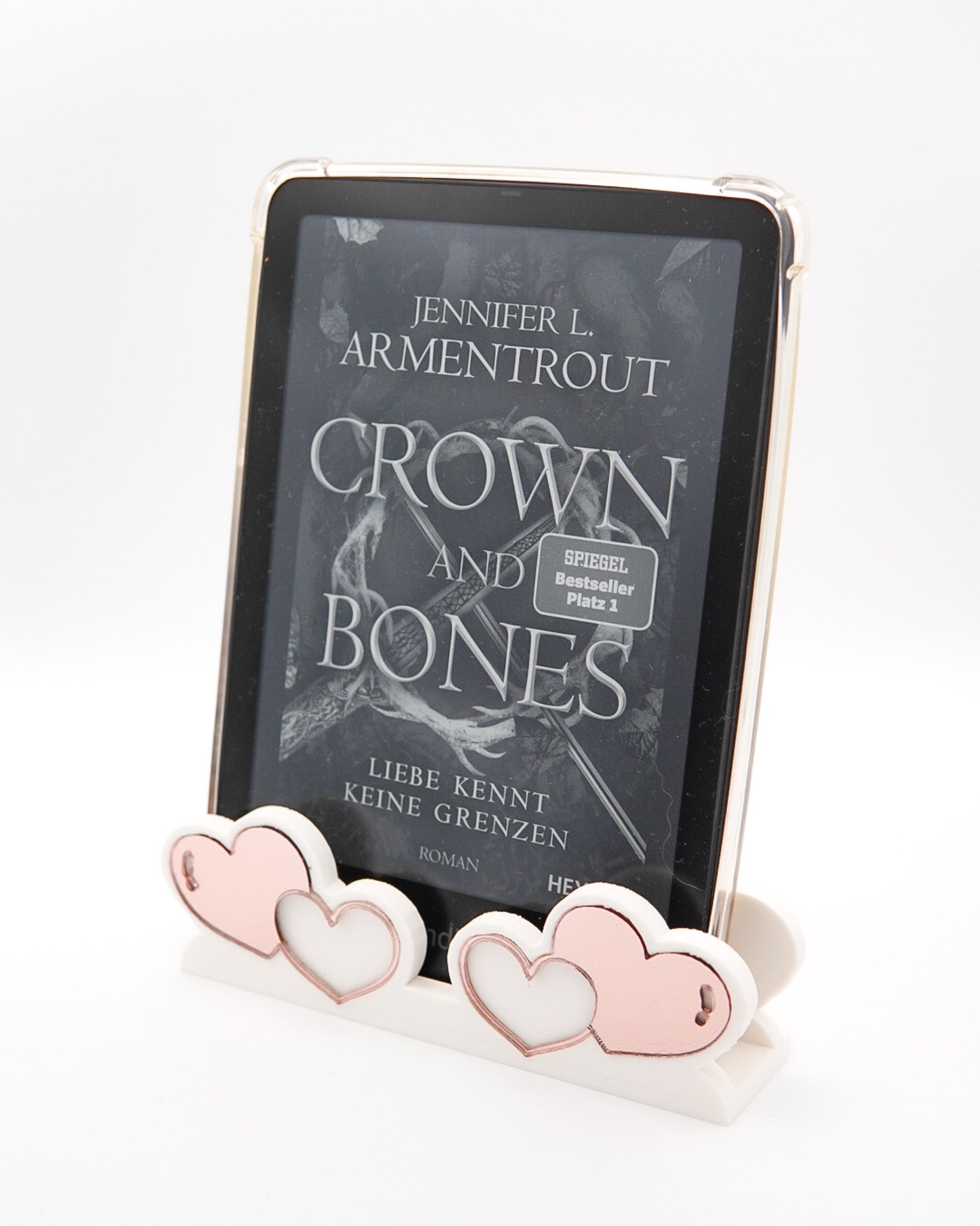 Gib deinem E-Book Reader endlich ein Zuhause. Passend für dein Regal, für jeden Romance Fan. In Weiß oder Rosa mit eingearbeiteten Spiegelacryl in Rosé.